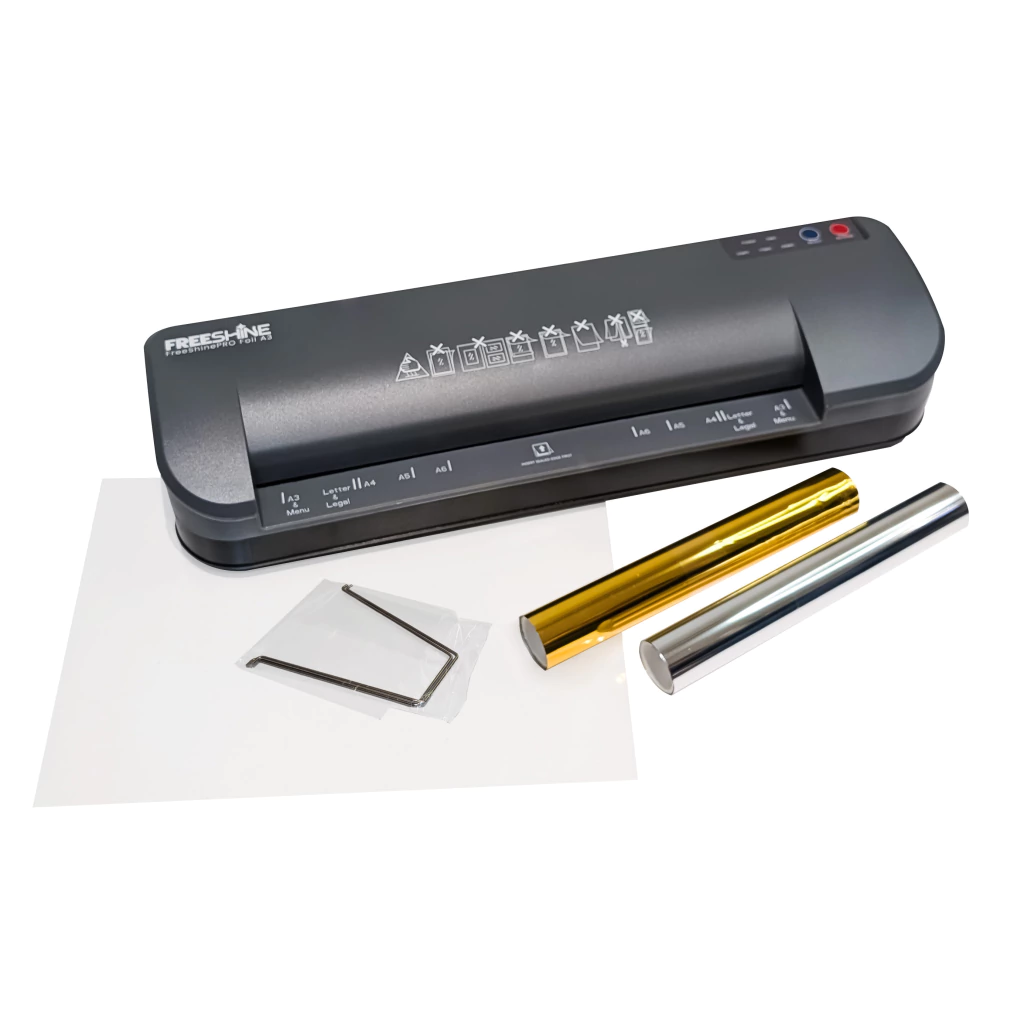 La FreeShine PRO Foil A3 es el modelo más completo de la línea: diseñada para trabajos de mayor tamaño y exigencia. Permite laminar o aplicar foil sobre hojas A3, con regulación precisa de velocidad y botón de reversa antiatasco. Ideal para producción creativa o estudios de diseño que buscan un acabado profesional.