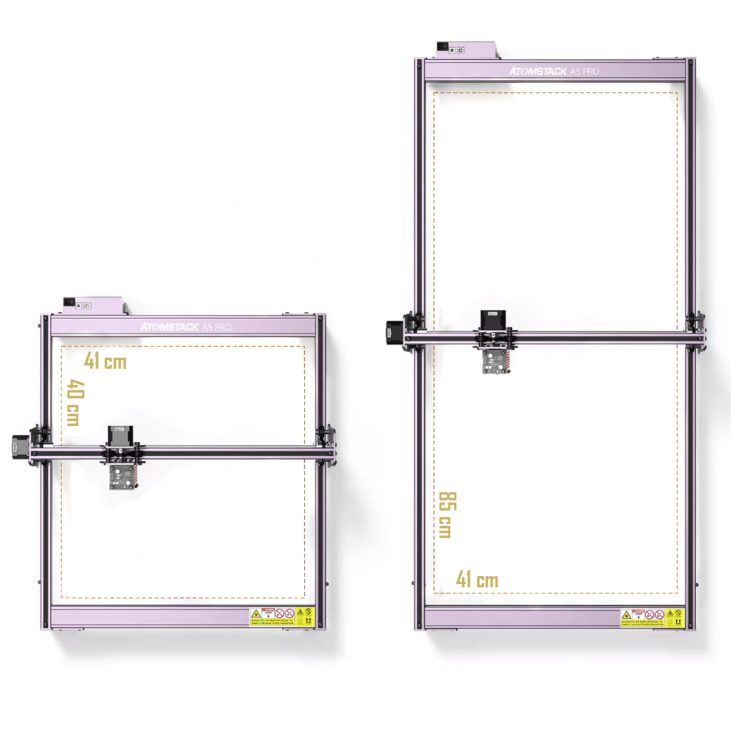 - Expanda rápidamente el área de grabado de su equipo Atomstack a bajo precio: al reemplazar los laterales del eje Y , puede obtener rápidamente un área de grabado enorme de 410x850 mm. Satisfaga las necesidades de los usuarios de grabado de gran superficie.