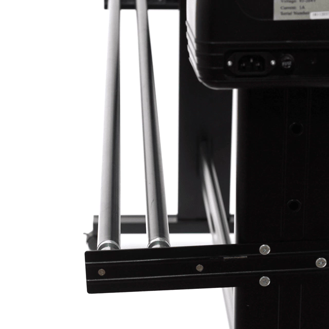 Ancho máximo de corte: 120 cm, resolución: 0,5 cm o 5 mm, velocidad: 50 – 800 mm/s, fuerza de corte: 50 – 500 gr, gramaje máximo de corte: de 0.5 a 1.5 mm. Reconoce archivos vectoriales: .ai, .dxf, .pdf, .svg, .eps, .cut.
